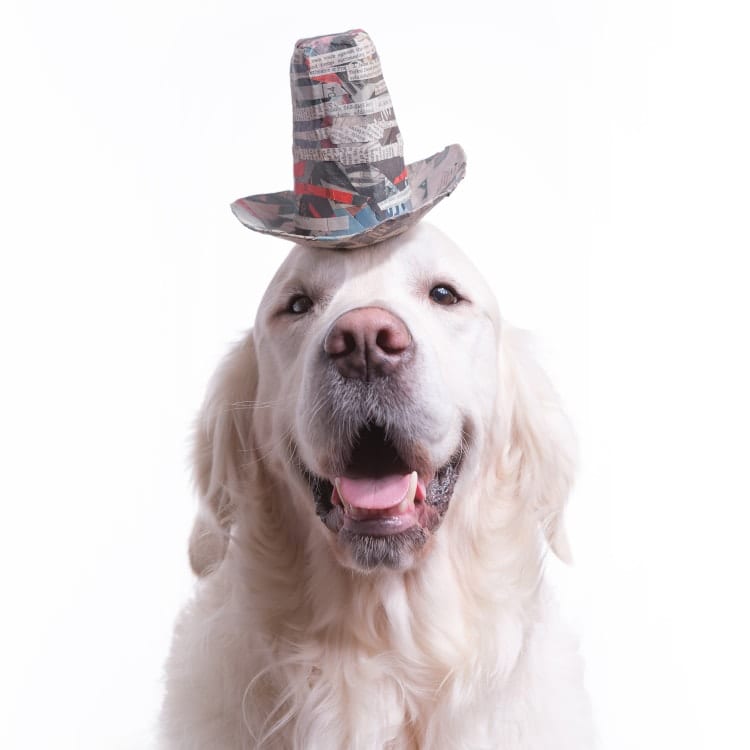 Convincing a dog to engage with a camera is difficult. Convincing a dog to wear a hat is even trickier. Convincing multiple dogs to do either simultaneously is a Sisyphean effort. The moment one dog cooperates, the other will break. Generally speaking, the only way to make it work is to either capture each dog individually and composite them into a single image (again, why bother when you can just shoot them separately). Or to physically restrain the dogs with a leash or bullet proof training (either of which would be at odds with capturing an authentic expression).